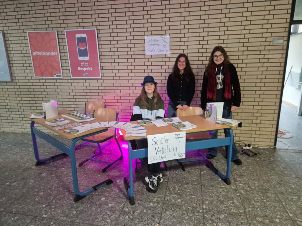 Bereits zur Begrüßung durch den Direktor der Schule, Herrn Dr. Krämer, der die Profilschwerpunkte des GSG mit multimedialer Präsentation vorstellte, erfüllte ein lockender Duft nach Kaffee und Crêpes die Gänge der Schule und lud im Anschluss zu einem gemütlichen Beisammensein und Plaudern sowie einem spannenden Rundgang durch die Schule ein.