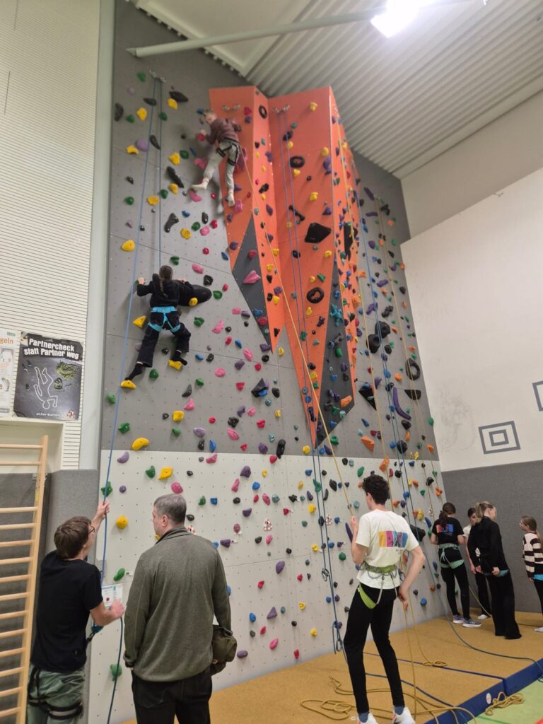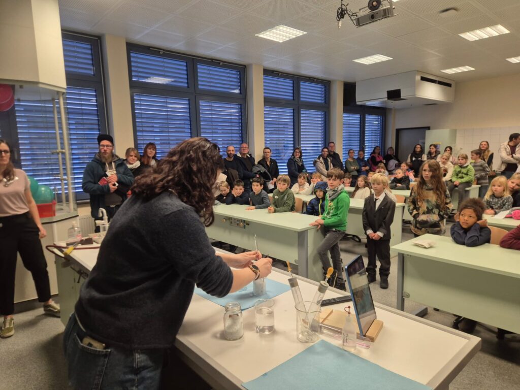 Im weiteren Verlauf erwartete die Gäste ein buntes Programm: eine Bücher-Rallye mit tollen Preisen, Show-Experimente in der Chemie, Mitmachtheater der Gruppe Darstellendes Spiel, einmal selbst Fossilien präparieren am Aktivstand des Naturerlebniszentrums Nettersheim und vieles mehr. Vertreter der Junior Uni waren ebenfalls anwesend und luden dazu ein, die virtuelle Welt mittels VR-Brillen zu erkunden. Die Lehrerinnen und Lehrer stellten ihre Räume, Fächer und Arbeitsgemeinschaften mit Begeisterung vor und öffneten sich den Fragen ihrer interessierten großen und kleinen Gäste. Zudem gab es wie in jedem Jahr wieder die Möglichkeit am „Schnupperunterricht“ teilzunehmen. Das Highlight für viele Besuche war die neue Sporthalle, an der sich die Kinder auch an der Toprope-Kletterwand und einem Hindernisparcours austoben konnten.