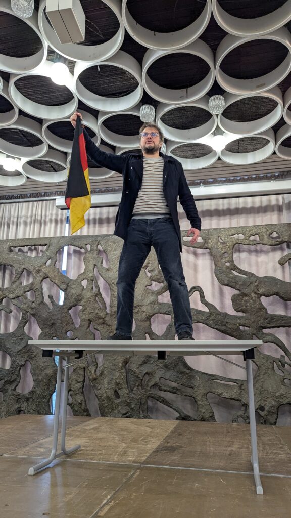 Im Rahmen der jährlich schulweit stattfindenden Methodentage präsentierte Tino Leo am 09.02.2026 in der Aula des Geschwister-Scholl-Gymnasiums Daun sein Ein-Personen-Theaterstück „Einigkeit und Recht und Freiheit – Die Revolution von 1848/49“. Im Fokus standen die Entwicklungen des Vormärz sowie die Arbeit der Frankfurter Nationalversammlung in der Paulskirche. Gefördert wurde die Veranstaltung von der Landeszentrale für politische Bildung, um die politische Urteilsfähigkeit der Teilnehmenden zu stärken und einen lebendigen Zugang zu demokratischen Prozessen zu eröffnen.
